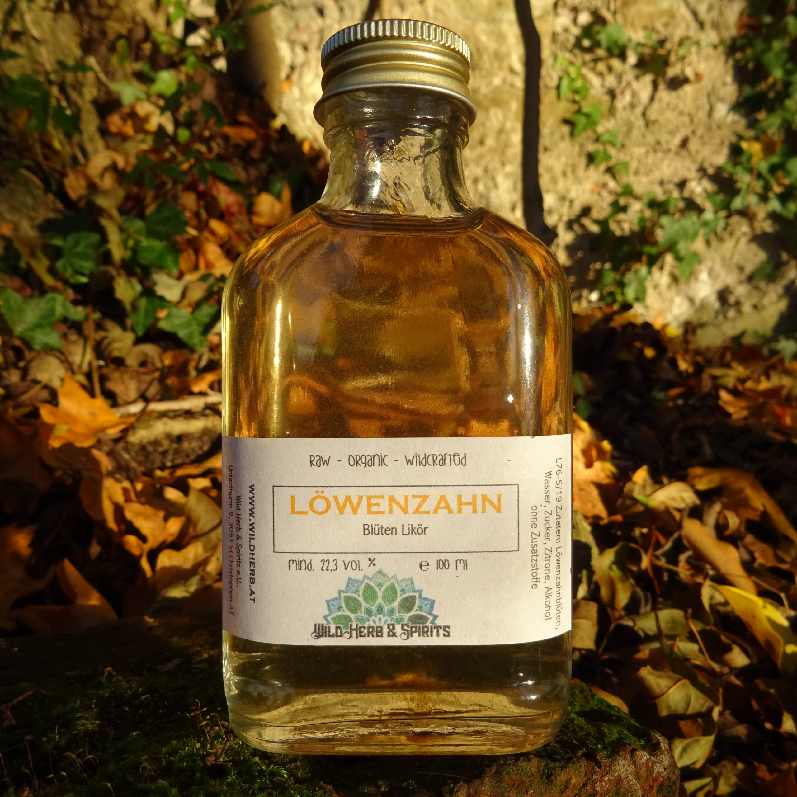 100 ml Auszug von Löwenzahnblüten mit Ansatzkorn, Invertzucker, Wasser – ca. 26,5 Vol.% Alc.